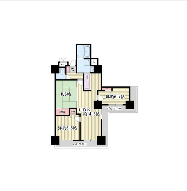 和室6畳 洋室6.7畳 洋室5.5畳 LDK14.5畳